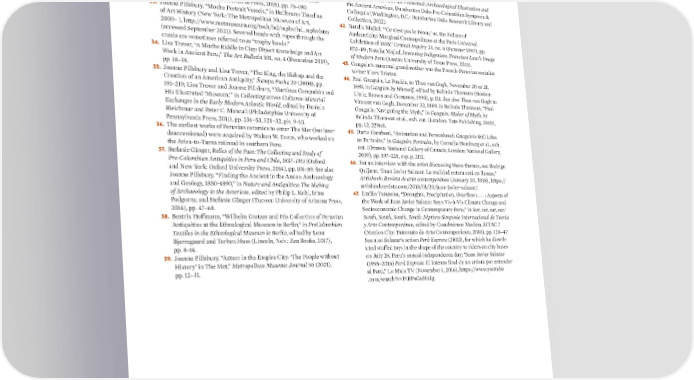29. Lisa DeLeonardis, “The Body Context: Interpreting Early Nasca 40. The Museum generally does not acquire an antiquity unless Decapitated Burials,” Latin American Antiquity 11, no. 4 (December provenance research substantiates that the work was outside its 2000), pp. 363–86; Conlee, “Decapitation and Rebirth,” pp. 438–45. country of probable modern discovery before 1970 or was legally 30. For instance, the portrait head in The Met collection (82.1.28) can exported from its probable country of modern discovery after 1970. be compared with a similar one in the Museo Central-BCRP, Lima For more on The Met’s policies, see The Metropolitan Museum of (ACE-0906), or another in the Museo Larco, Lima (ML013550). Art, Collections Management Policy, September 13, 2022, https:// 31. Christopher B. Donnan, Moche Portraits from Ancient Peru (Austin: www.metmuseum.org/-/media/昀椀les/about-the-met/policies- University of Texas Press, 2004), pp. 141–59. and-documents/collections-management-policy/Collections- 32. Mary Weismantel, “Many Heads Are Better than One: Mortuary Management-Policy.pdf. Practice and Ceramic Art in Moche Society,” in Living with the Dead 41. Joanne Pillsbury, ed., Past Presented: Archaeological Illustration and in the Andes, edited by Izumi Shimada and James L. Fitzsimmons the Ancient Americas, Dumbarton Oaks Pre-Columbian Symposia & (Tucson: The University of Arizona Press, 2015), pp. 76–100. Colloquia (Washington, D.C.: Dumbarton Oaks Research Library and 33. Joanne Pillsbury, “Moche Portrait Vessels,” in Heilbrunn Timeline Collection, 2012). of Art History (New York: The Metropolitan Museum of Art, 42. Natalia Majluf, “‘Ce n’est pas le Pérou,’ or, the Failure of 2000– ), http://www.metmuseum.org/toah/hd/mphv/hd_mphv.htm Authenticity: Marginal Cosmopolitans at the Paris Universal (accessed September 2021). Severed heads with ropes through the Exhibition of 1855,” Critical Inquiry 23, no. 4 (Summer 1997), pp. crania are sometimes referred to as “trophy heads.” 875–89; Natalia Majluf, Inventing Indigenism: Francisco Laso’s Image 34. Lisa Trever, “A Moche Riddle in Clay: Object Knowledge and Art of Modern Peru (Austin: University of Texas Press, 2021). Work in Ancient Peru,” The Art Bulletin 101, no. 4 (December 2019), 43. Gauguin’s maternal grandmother was the French-Peruvian socialist pp. 18–38. writer Flora Tristan. 35. Joanne Pillsbury and Lisa Trever, “The King, the Bishop, and the 44. Paul Gauguin, Le Pouldu, to Theo van Gogh, November 20 or 21, Creation of an American Antiquity,” Ñawpa Pacha 29 (2008), pp. 1889, in Gauguin by Himself, edited by Belinda Thomson (Boston: 191–219; Lisa Trever and Joanne Pillsbury, “Martínez Compañón and Little, Brown and Company, 1993), p. 111. See also Theo van Gogh to His Illustrated ‘Museum,’” in Collecting across Cultures: Material Vincent van Gogh, December 22, 1889, in Belinda Thomson, “Paul Exchanges in the Early Modern Atlantic World, edited by Daniela Gauguin: Navigating the Myth,” in Gauguin: Maker of Myth, by Bleichmar and Peter C. Mancall (Philadelphia: University of Belinda Thomson et al., exh. cat. (London: Tate Publishing, 2010), Pennsylvania Press, 2011), pp. 236–53, 325–32, pls. 9–10. pp. 12, 229n8. 36. The earliest works of Peruvian ceramics to enter The Met (but later 45. Dario Gamboni, “Animation and Personhood: Gauguin’s Still Lifes deaccessioned) were acquired by Walton W. Evans, who worked on as Portraits,” in Gauguin: Portraits, by Cornelia Homburg et al., exh. the Arica-to-Tacna railroad in southern Peru. cat. (Ottawa: National Gallery of Canada; London: National Gallery, 37. Stefanie G愃ࠀnger, Relics of the Past: The Collecting and Study of 2019), pp. 197–225, esp. p. 202. Pre-Columbian Antiquities in Peru and Chile, 1837–1911 (Oxford 46. For an interview with the artist discussing these themes, see Rodrigo and New York: Oxford University Press, 2014), pp. 101–59. See also Quijano, “Juan Javier Salazar: La realidad entera está en llamas,” Joanne Pillsbury, “Finding the Ancient in the Andes: Archaeology Artishock: Revista de arte contempor愃Āneo (January 20, 2018), https:// and Geology, 1850–1890,” in Nature and Antiquities: The Making artishockrevista.com/2018/01/20/juan-javier-salazar/. of Archaeology in the Americas, edited by Philip L. Kohl, Irina 47. Emilio Tarazona, “Droughts, Precipitation, Over昀氀ows . . . : Aspects of Podgorny, and Stefanie G愃ࠀnger (Tucson: University of Arizona Press, the Work of Juan Javier Salazar Seen Vis-à-Vis Climate Change and 2014), pp. 47–68. Socioeconomic Change in Contemporary Peru,” in Sur, sur, sur, sur/ 38. Beatrix Ho昀昀mann, “Wilhelm Gretzer and His Collection of Peruvian South, South, South, South: Séptimo Simposio Internacional de Teoría Antiquities at the Ethnological Museum in Berlin,” in PreColumbian y Arte Contempor愃Āneo, edited by Cuauhtémoc Medina, SITAC 7 Textiles in the Ethnological Museum in Berlin, edited by Lena (Mexico City: Patronato de Arte Contemporáneo, 2010), pp. 128–47. Bjerregaard and Torben Huss (Lincoln, Neb.: Zea Books, 2017), See also Salazar’s action Perú Express (2002), for which he distrib- pp. 8–14. uted stu昀昀ed toys in the shape of the country to riders on city buses 39. Joanne Pillsbury, “Aztecs in the Empire City: ‘The People without on July 28, Peru’s annual independence day; “Juan Javier Salazar History’ in The Met,” Metropolitan Museum Journal 56 (2021), (1955–2016) Perú Express: El intento 昀椀nal de un artista por entender pp. 12–31. al Perú,” La Mula TV (November 1, 2016), https://www.youtube .com/watch?v=FtBPoGuHxIg.