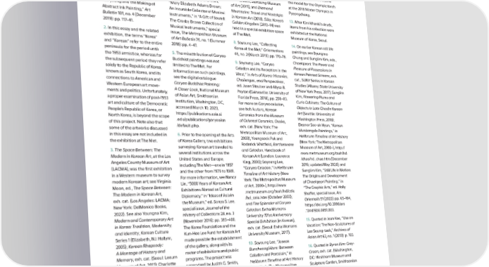 NOTES in Korean Art: Fluidity and 7. There have been 昀椀ve special 11. Kim Brandt, Kingdom of Fragmentation (New York: exhibitions in the Arts of Korea Beauty: Mingei and the Politics 1. For more on Suh Se Ok and Routledge, 2022); and Kyung Gallery: the inaugural show, Arts of Folk Art in Imperial Japan modern ink painting, see Chung An and Kang Soojung, eds., Only of Korea (1998); Korean Ceramics (Durham, NC: Duke University Hyung- min, Modern Korean Ink the Young: Experimental Art in from the Museum of Oriental Press, 2007), pp. 1–37. Painting, Korean Culture Series 5 Korea, 1960s and 1970s (New Ceramics, Osaka (2000); Art of 12. For example, the status of the (Elizabeth, NJ: Hollym, 2006); York: Guggenheim Museum the Korean Renaissance, moon jar as a national symbol Joan Kee, “The Curious Case Publications, 2023). 1400–1600 (2009); Poetry in Clay: was solidi昀椀ed when it became of Contemporary Ink Painting,” 4. For more on the Crosby Brown Korean Buncheong Ceramics the model for the Olympic torch Art Journal 69, no. 3 (2010): Collection, see Sally B. Brown, from Leeum, Samsung Museum at the 2018 Winter Olympics in pp. 88–113; and Joan Kee, “Jung “Mary Elizabeth Adams Brown: of Art (2011); and Diamond Pyeongchang. Tak- young and the Making of An Incurable Collector of Musical Mountains: Travel and Nostalgia Abstract Ink Painting,” Art Instruments,” in “A Gi昀琀 of Sound: in Korean Art (2018). Silla: Korea’s 13. A昀琀er Kim Whanki’s death, Bulletin 101, no. 4 (December The Crosby Brown Collection of Golden Kingdom (2013–14) was items from his collection were 2019): pp. 117–41. Musical Instruments,” special held in a special exhibition space exhibited at the National 2. In this essay and the related issue, The Metropolitan Museum at The Met. Museum of Korea, Seoul. exhibition, the terms “Korea” of Art Bulletin 76, no. 1 (Summer 8. Soyoung Lee, “Collecting 14. On earlier Korean still life and “Korean” refer to the entire 2018): pp. 4–47. Korea at the Met,” Orientations paintings, see Byungmo peninsula for the period until 5. The misattribution of Goryeo 46, no. 2 (March 2015): pp. 170–78. Chung and Sunglim Kim, eds., the 1953 armistice, whereas for Buddhist paintings was not 9. Soyoung Lee, “Goryeo Chaekgeori: The Power and the subsequent period they refer limited to The Met. For Celadon and Its Reception in the Pleasure of Possessions in solely to the Republic of Korea, information on such paintings, West,” in Arts of Korea: Histories, Korean Painted Screens, exh. known as South Korea, and its see the digital catalogue Challenges, and Perspectives, cat., SUNY Series in Korean connections to American and Goryeo Buddhist Painting: ed. Jason Steuber and Allysa B. Studies (Albany: State University Western European art move- A Closer Look, National Museum Peyton (Gainesville: University of of New York Press, 2017); Sunglim ments and politics. Unfortunately, of Asian Art, Smithsonian Florida Press, 2018), pp. 258–83. Kim, Flowering Plums and a proper examination of post- 1953 Institution, Washington, DC, For more on Goryeo celadon, Curio Cabinets: The Culture of art and culture of the Democratic accessed March 10, 2023, see Itoh Ikutaro, Korean Objects in Late Chos漃n Korean People’s Republic of Korea, or https://publications.asia.si Ceramics from the Museum Art (Seattle: University of North Korea, is beyond the scope .edu/publications/goryeo/en of Oriental Ceramics, Osaka, Washington Press, 2018); of this project. Note also that /default.php. exh. cat. (New York: The Eleanor Soo- ah Hyun, “Korean some of the artworks discussed Metropolitan Museum of Art, Munbangdo Paintings,” in in this essay are not included in 6. Prior to the opening of the Arts 2000); Youngsook Pak and Heilbrunn Timeline of Art History the exhibition at The Met. of Korea Gallery, two exhibitions Roderick Whit昀椀eld, Earthenware (New York: The Metropolitan 3. The Space Between: The surveying Korean art traveled to and Celadon, Handbook of Museum of Art, 2000–), http:// Modern in Korean Art, at the Los several institutions across the Korean Art (London: Laurence www.metmuseum.org/toah/hd Angeles County Museum of Art United States and Europe, King, 2003); Soyoung Lee, /chae/hd_chae.htm (December (LACMA), was the 昀椀rst exhibition including The Met—one in 1957 “Goryeo Celadon,” in Heilbrunn 2016; updated May 2020); and in a Western museum to survey and the other from 1979 to 1981. Timeline of Art History (New Sunglim Kim, “Still Life in Motion: modern Korean art; see Virginia For more information, see Nancy York: The Metropolitan Museum The Origins and Development Moon, ed., The Space Between: Lin, “5000 Years of Korean Art: of Art, 2000–), http://www of Chaekgeori Painting,” in The Modern in Korean Art, Exhibitions Abroad as Cultural .metmuseum.org/toah/hd/cela “The Graphic Arts,” ed. Holly exh. cat. (Los Angeles: LACMA; Diplomacy,” in “Ideas of Asia in /hd_cela.htm (October 2003); Sha昀昀er, special issue, Ars New York: DelMonico Books, the Museum,” ed. Sonya S. Lee, and The Splendor of Goryeo Orientalis 51 (2022): pp. 65–104, 2022). See also Youngna Kim, special issue, Journal of the Celadon: Ewha Womans https://doi.org/10.3998/ars Modern and Contemporary Art History of Collections 28, no. 3 University 131st Anniversary .13441566.0051.003. in Korea: Tradition, Modernity, (November 2016): pp. 383–400. Special Exhibition (in Korean), 15. Quoted in Joan Kee, “Use on and Identity, Korean Culture The Korea Foundation and the exh. cat. (Seoul: Ewha Womans Vacation: The Non- Sculptures of Series 1 (Elizabeth, NJ: Hollym, Kun- Hee Lee Fund for Korean Art University Museum, 2017). Lee Seung- taek,” Archives of 2005); Korean Rhapsody: made possible the establishment Asian Art 63, no. 1 (2013): p. 103. A Montage of History and of the gallery, along with its 10. Soyoung Lee, “Joseon Memory, exh. cat. (Seoul: Leeum roster of 