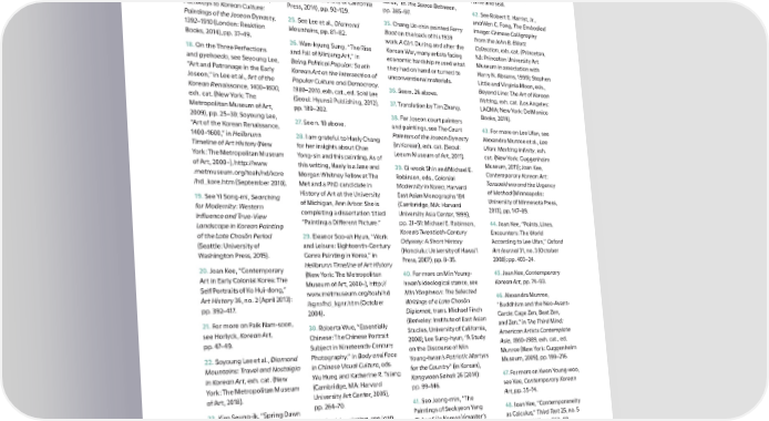 1998), pp. 294–329; Soyoung Lee, of Korea, Seoul, accessed 32. The Arrival of New Women thesis, Academy of Korean based on original work by Ahn March 26, 2023, https://www (in Korean), exh. cat. (Seoul: Studies, 2013), pp. 17–21. The Hwi- joon, “Mountain and Water: .museum.go.kr/site/main/relic National Museum of Modern and painting reproduced has neither Korean Landscape Painting, /recommend/view?relic Contemporary Art, Korea, 2017). a signature nor a seal, but 1400–1800,” in Heilbrunn RecommendId=164289. 33. Kee, “Modern Art in Late the composition and calligraphy Timeline of Art History (New 24. Todd Henry, Assimilating Colonial Korea,” p. 233. are stylistically similar to a York: The Metropolitan Museum Seoul: Japanese Rule and the work in the Seoul Museum of of Art, 2000–), http://www Politics of Public Space in 34. See Joan Kee, “What History, which bears Yang’s .metmuseum.org/toah/hd Colonial Korea, 1910–1945 Contemporary Art Means in name and seal. /mowa/hd_mowa.htm (October (Berkeley: University of California Korea,” in The Space Between, 42. See Robert E. Harrist, Jr., 2004); and Burglind Jungmann, Press, 2014), pp. 92–129. pp. 285–97. and Wen C. Fong, The Embodied Pathways to Korean Culture: 35. Chang Uc- chin painted Ferry Image: Chinese Calligraphy Paintings of the Joseon Dynasty, 25. See Lee et al., Diamond Boat on the back of his 1939 from the John B. Elliott 1392–1910 (London: Reaktion Mountains, pp. 81–82. work A Girl. During and a昀琀er the Collection, exh. cat. (Princeton, Books, 2014), pp. 37–49. 26. Wan-kyung Sung, “The Rise Korean War, many artists facing NJ: Princeton University Art 18. On the Three Perfections and Fall of Minjung Art,” in economic hardship reused what Museum in association with and gyehoedo, see Soyoung Lee, Being Political Popular: South they had on hand or turned to Harry N. Abrams, 1999); Stephen “Art and Patronage in the Early Korean Art at the Intersection of unconventional materials. Little and Virginia Moon, eds., Joseon,” in Lee et al., Art of the Popular Culture and Democracy, 36. See n. 26 above. Beyond Line: The Art of Korean Korean Renaissance, 1400–1600, 1980–2010, exh. cat., ed. Sohl Lee Writing, exh. cat. (Los Angeles: exh. cat. (New York: The (Seoul: Hyunsil Publishing, 2012), 37. Translation by Tim Zhang. LACMA; New York: DelMonico Metropolitan Museum of Art, pp. 189–202. 38. For Joseon court painters Books, 2019). 2009), pp. 25–30; Soyoung Lee, 27. See n. 19 above. and paintings, see The Court 43. For more on Lee Ufan, see “Art of the Korean Renaissance, Painters of the Joseon Dynasty Alexandra Munroe et al., Lee 1400–1600,” in Heilbrunn 28. I am grateful to Haely Chang (in Korean), exh. cat. (Seoul: Ufan: Marking In昀椀nity, exh. Timeline of Art History (New for her insights about Chae Leeum Museum of Art, 2011). cat. (New York: Guggenheim York: The Metropolitan Museum Yong- sin and this painting. As of Museum, 2011); Joan Kee, of Art, 2000–), http://www this writing, Haely is a Jane and 39. Gi- wook Shin and Michael E. Contemporary Korean Art: .metmuseum.org/toah/hd/kore Morgan Whitney Fellow at The Robinson, eds., Colonial Tansaekhwa and the Urgency /hd_kore.htm (September 2010). Met and a PhD candidate in Modernity in Korea, Harvard of Method (Minneapolis: 19. See Yi Song- mi, Searching History of Art at the University East Asian Monographs 184 University of Minnesota Press, for Modernity: Western of Michigan, Ann Arbor. She is (Cambridge, MA: Harvard 2013), pp. 147–89. In昀氀uence and True- View completing a dissertation titled University Asia Center, 1999), Landscape in Korean Painting “Painting a Di昀昀erent Picture.” pp. 21–51; Michael E. Robinson, 44. Joan Kee, “Points, Lines, of the Late Chos漃n Period 29. Eleanor Soo- ah Hyun, “Work Korea’s Twentieth- Century Encounters: The World (Seattle: University of and Leisure: Eighteenth- Century Odyssey: A Short History According to Lee Ufan,” Oxford Washington Press, 2015). Genre Painting in Korea,” in (Honolulu: University of Hawai‘i Art Journal 31, no. 3 (October Heilbrunn Timeline of Art History Press, 2007), pp. 8–35. 2008): pp. 403–24. 20. Joan Kee, “Contemporary (New York: The Metropolitan 40. For more on Min Young- 45. Joan Kee, Contemporary Art in Early Colonial Korea: The Museum of Art, 2000–), http:// hwan’s ideological stance, see Korean Art, pp. 74–93. Self Portraits of Ko Hui- dong,” www.metmuseum.org/toah/hd Min Y漃nghwan: The Selected Art History 36, no. 2 (April 2013): /kgnr/hd_kgnr.htm (October Writings of a Late Chos漃n 46. Alexandra Munroe, pp. 392–417. 2004). Diplomat, trans. Michael Finch “Buddhism and the Neo- Avant- 21. For more on Paik Nam- soon, (Berkeley: Institute of East Asian Garde: Cage Zen, Beat Zen, see Horlyck, Korean Art, 30. Roberta Wue, “Essentially Studies, University of California, and Zen,” in The Third Mind: pp. 47–49. Chinese: The Chinese Portrait 2008); Lee Sung- hyun, “A Study American Artists Contemplate Subject in Nineteenth-Century on the Discourse of Min Asia, 1860–1989, exh. cat., ed. 22. Soyoung Lee et al., Diamond Photography,” in Body and Face Young- hwan’s Patriotic Martyrs Munroe (New York: Guggenheim Mountains: Travel and Nostalgia in Chinese Visual Culture, eds. for the Country” (in Korean), Museum, 2009), pp. 199–216. in Korean Art, exh. cat. (New Wu Hung and Katherine R. Tsiang Kangwoen Sahak 26 (2014): For more on Kwon Young- woo, York: The Metropolitan Museum (Cambridge, MA: Harvard 47. of Art, 2018). University Art Center, 2005), pp. 99–146. see Kee, Contemporary Korean pp. 264–70. 41. Seo Jeong- min, “The Art, pp. 35–74. 23. Kim Seung- ik, “Spring Dawn Paintings of Seokyeon Yang 48. Joan Kee, “Contemporaneity at Mount Baegak—The Lost 31. On this painting, see Joan Gi- hun” (in Korean) (master’s as Calculus,” Third Text 25, no. 5 Spring of the Palace” (in Korean), Kee, “M